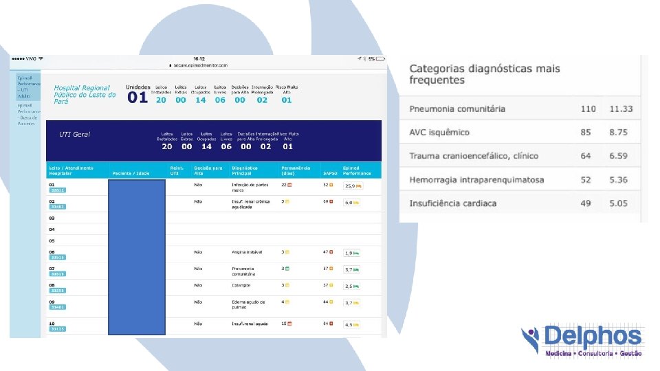 S-PLOS Ferramenta Epimed LOS Estima quanto tempo o paciente vai ficar na UTI e qual o Risco da internação dele ser prolongada de acordo com o Diagnóstico e mais outras 79 variáveis. Internação prolongada: quando ultrapassa o tempo de 90% dos casos do banco de dados (em 2016 foram cerca de 250 mil pacientes)