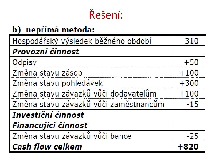 Př. 2: Popište dopad na CF Řešení: A = - 1 000 B = - 950 C = - 1 050 D = - 1 150 E = - 820