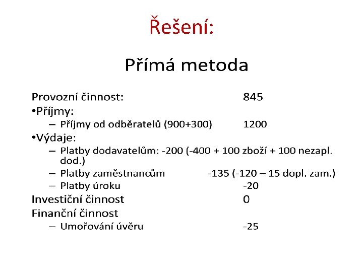 Řešení- výpočet přímou a nepřímou metodou