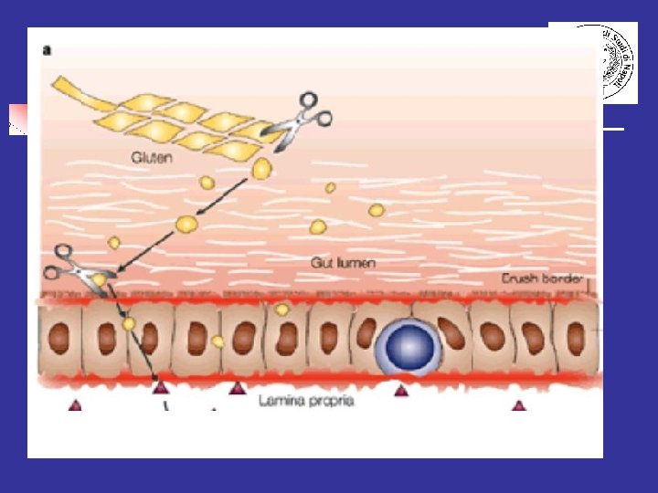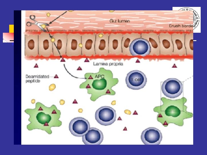 Istologia duodenale n Sensibile riduzione in altezza dei villi. n Notevole iperplasia delle cripte di Lieberkun. n Infiltrato linfo-plasmacellulare a livello della lamina propria.
