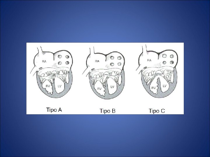 Classificação de Rastelli § Anatomia das valva atrioventriculares e da inserção das cordoalhas do folheto ponte anterior : A: Inserem se no topo do septo ventricular B: Inserem se em músculo papilar anômalo próximo do septo ventricular no VD C: Folheto “free floating” e suas cordoalhas inserem se no músculo papilar anterior do VD, sem se ligar ao septo ventricular