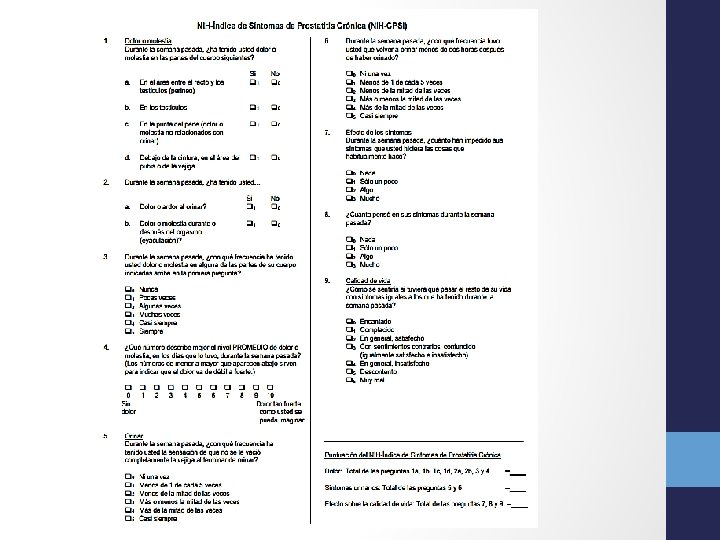 Prostatitis crónica no bacteriana/síndrome de dolor pélvico crónico § Incidencia: 3 -4/1000 pacientes-año. Prevalencia: 5 -15% § Etiología desconocida, NO INFECCIOSA § Sospecha clínica • Varón joven (35 -55 años), sin historia de ITU y a menudo con desequilibrios psicológicos secundarios. • Presentan dolor genitourinario crónico de al menso 3 meses de duración y molestias genitourinarias recurrentes (obstructivo o irritativo) y sexual • 50% otra patología genitourinaria. Se solapan con otros síndromes dolorosos pélvicos § El diagnóstico complejo, multinivel: • Clínico Ccuestionarios), ecográfico, histológico, cito-microbiológico y analítico. • Sedimento y urocultivo son negativos • En el subtipo inflamatorio de PCNB/SDPC presentan leucocitos en las secreciones prostáticas, en la orina después de un masaje prostático o en el semen § Tratamiento urológico y multifactorial • • AINE, alfabloqueantes, 5 -ARI Estimulación de la respuesta inmune, Procedimientos quirúrgicos Apoyo psicológico.
