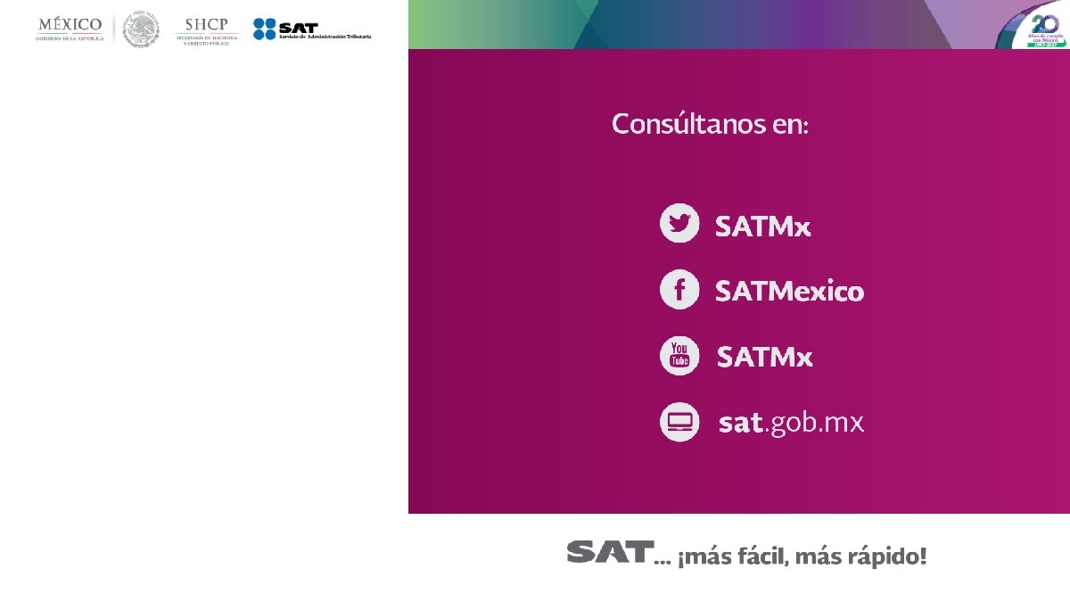 Beneficios ü Fortalece el procesamiento electrónico de datos. Permite automatizar procesos. ü Su estructura facilita la interoperabilidad entre los sistemas (Contribuyente – Contribuyente y Autoridad – Contribuyente). ü Reduce las fuentes de información para las acciones de fiscalización, integrando en el CFDI información captada a través de reportes, declaraciones. ü Se facilita la presentación de declaraciones con información pre-llenada. ü Capta en forma inmediata la información de las transacciones de los contribuyentes. ü Permite ofrecer al contribuyente servicios electrónicos optimizados con información precargada. ü Agiliza los procesos tributarios utilizando información captada a través de los CFDI. ü Consistencia de la información a fin de evitar discrepancias de cumplimiento. ü Abatimiento de rechazo de facturas por inconsistencias de datos o cálculos