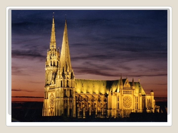 �Autor: El Obispo Fulberto de Chartres mandó construir la catedral original, poco después, un incendio devastó el templo (no existen fuentes que revelen como comenzó la catástrofe), pero los habitantes no tardaron en acometer de nuevo la construcción financiada por la dinastía de los Capeto. �Año de creación: Iniciada a finales del s. XII, tras el incendio del 11 de junio de 1194, de la cual quedó solo la fachada occidental, la reconstrucción comenzó ese mismo año. �Localización: Ciudad de Chartres- Francia. �Etapa-Época: Arte Gótico francés- Baja Edad Media