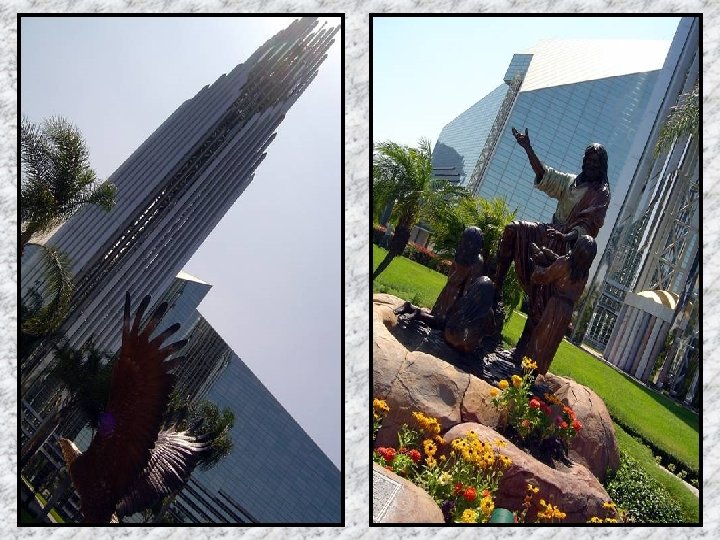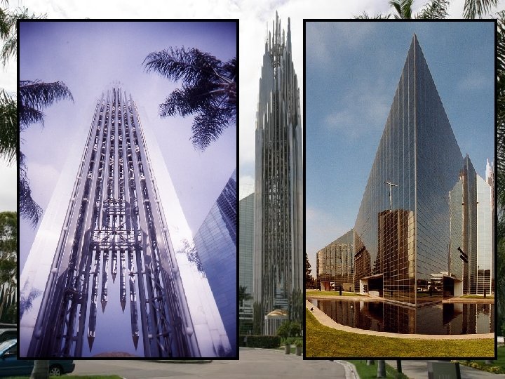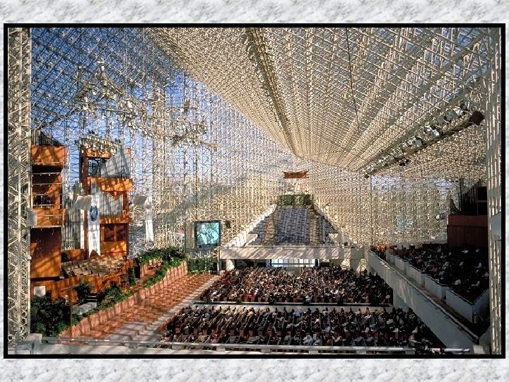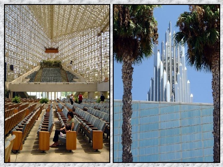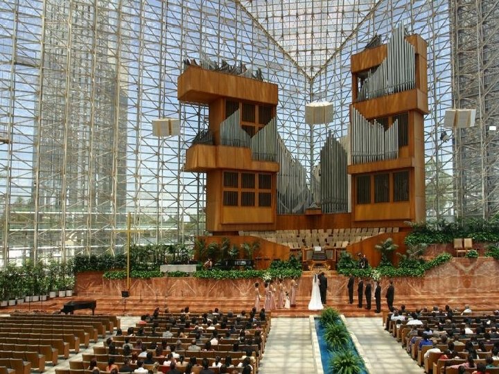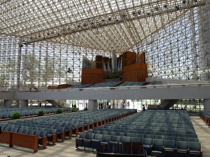 Se alguma vez houve uma igreja estilo "Hollywood“ no verdadeiro sentido da palavra, é a Igreja da Comunidade de Garden Grove, mais conhecida como a Catedral de Cristal. Ironicamente, ela não está localizada em Hollywood e sim apenas poucos quilômetros de distância da Disneyland, em Orange County. Mas a Catedral de Cristal é puro show biz, a partir das estrelas do cinema convidadas como oradores até a sua astuta utilização do poder da mídia como a TV a nível nacional. O maior edifício de vidro do mundo foi construído pelo Rev. Robert Schuller começou em 1955 como pastor da primeira igreja "drive-in“ da Califórnia, em Garden Grove. Sim, ela realmente foi situada em um antigo cinema drive-in e Schuller pregava do teto da lanchonete. Após o sucesso significativo e aproveitando-se da ótima localização, o Rev. Schuller abriu a Catedral de Cristal em 1980.