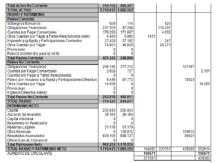 Análisis Analítico Capital de trabajo neto: CTN = E + OAC – PC Efectivo: E = DLP + CTN (EXCLUYENDO EL EFCTIVO) – AF Donde: CTN: Capital Total Neto AF: Activo Fijo. DLP: Deuda a Largo Plazo. C : Capital. E : Efectivo. PC : Pasivos Circulantes OAC: Otros Activos Circulantes