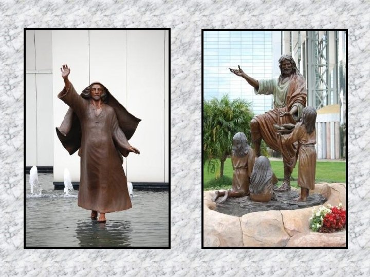 Des jardins extérieurs, parsemés de fleurs et de statues sur des thèmes religieux, complètent la décoration de la Cathédrale de Cristal.