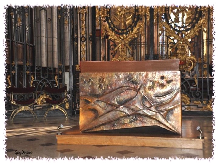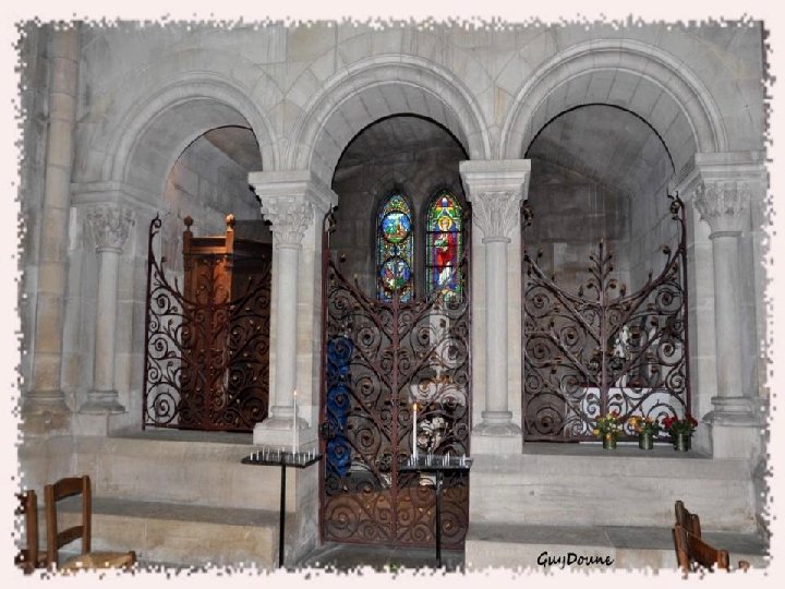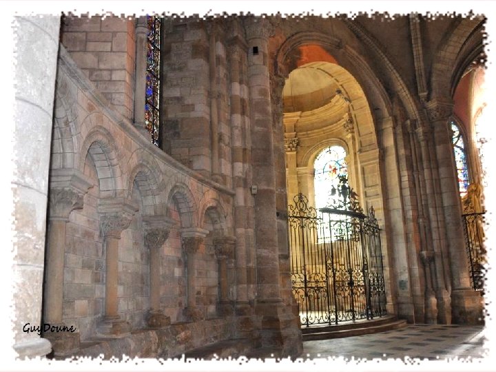 Le baptistère de la cathédrale (lieu où l’on baptise). Remarquable exemple de juxtaposition de l’ar roman (voûte en cul-de-four) et de l’art gothique. « belle croix de Sens » en bois 13° siècle