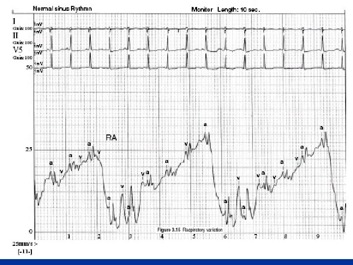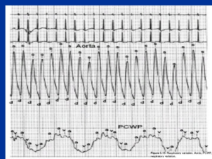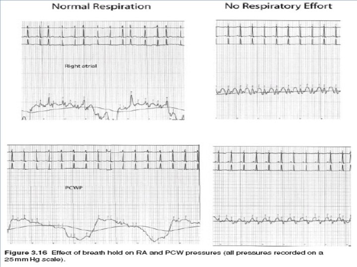 Respiratory variation • During spontaneous respiration intrathoracic pressure falls in end expiration by 3 -4 mmhg and end-inspiration by 7 -8 mmhg • This reduces the RA, LA, Aortic pressures and hence underestimates • All recordings in end expiration since it closely resembles the atmospheric pressure