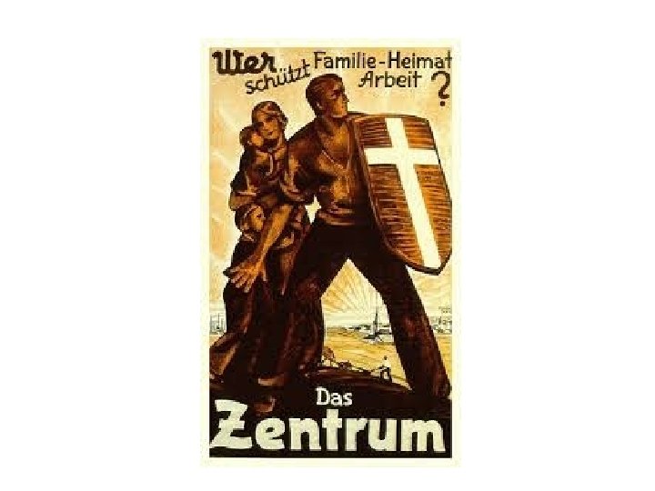Catholic Center Party (Zentrum, or, Z) In terms of ideology and class, the Catholic Center Party (Zentrum, or, Z) was more diverse than any of its Weimar rivals. Its one area of uniformity was its commitment to protect the interests of Germany’s Catholics; about 34% of the population. Thus, it is not surprising that the largest number of Center Party supporters were Catholic, although Protestants also supported the party and were included in its legislative delegation. Even some of Germany’s Jews (1% of the population) voted for the Catholic Center party. Catholic women voted for the party in very high numbers. While it had a left-liberal trade union wing, and a right-conservative nationalist wing, the weight of its support placed the party at the center of the political spectrum. The Center Party was vital to the stability of the Republic, and it was a part of every Weimar government. Its leaders served as chancellors for nine administrations and were included in each of the twenty-one cabinets that ruled during the fourteen years of the Republic. With the change in leadership of the party in 1928, it drifted towards its more conservative wing which had evolved into the Bavarian People’s Party. (BVP). Independent of the national Catholic Center party, the BVP often positioned itself in opposition to the Weimar government.