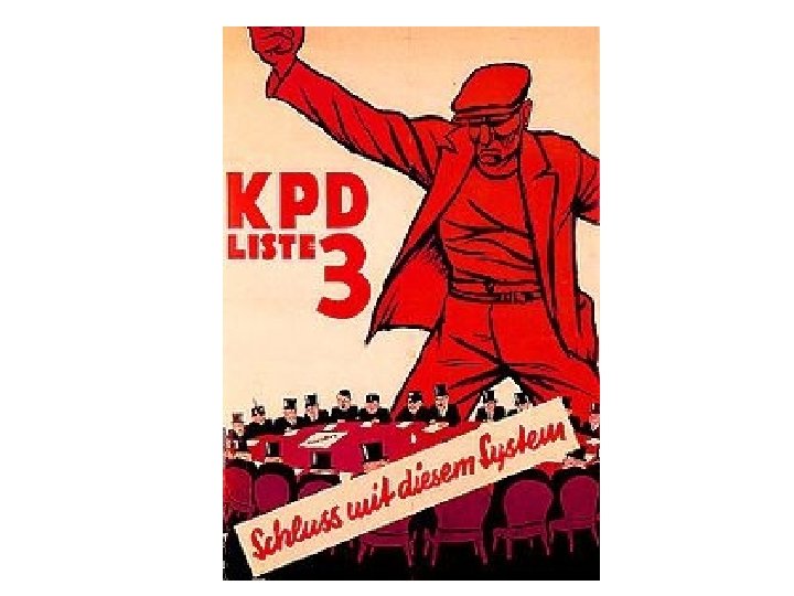 Communist Party (KPD) The German Communist Party (KPD) was founded at the end of December 1918 in the midst of revolutionary chaos. Its earliest members came from the ranks of the radical Spartacist group that had been crushed by the army under orders from a transitional government dominated by Social Democrats. Drawing on a membership of more radical workers and a small group of radical intellectuals, the party was fundamentally opposed to the existence of the Weimar Republic and, although a leftist party, was particularly antagonistic to the democratic leftist Social Democratic Party. The Communists were in favor of a Russian style dictatorship and during the Weimar period fell more and more under the control of the Communist international based in Moscow. While the party had a strong feminist agenda, as well as the only prominent woman party leaders and the most women candidates for office across the political spectrum, this position did not translate into substantial female voting support. Although the party opposed antisemitism and had Jews among its leaders, very few German Jews voted Communist. During the crisis of the last Wemar years the parties voting strength grew substantially as it attracted support from the growing ranks of the unemployed.