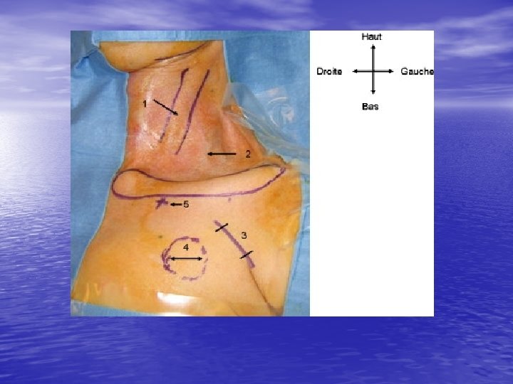 Technique • Choix de la veine d’abord: - veine céphalique dans le sillon delto pectoral: dissection - veine jugulaire interne: dissection ou ponction per cutanée avec ou sans échographie - veine sous clavière: ponction per cutanée avec ou sans échographie - veine jugulaire externe: dissection - exceptionnellement veine fémorale