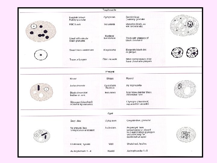 • Erythro-phagocytosis is the only morphologic characteristic that can be used to differentiate E. histolytica from the non-pathogenic E. dispar