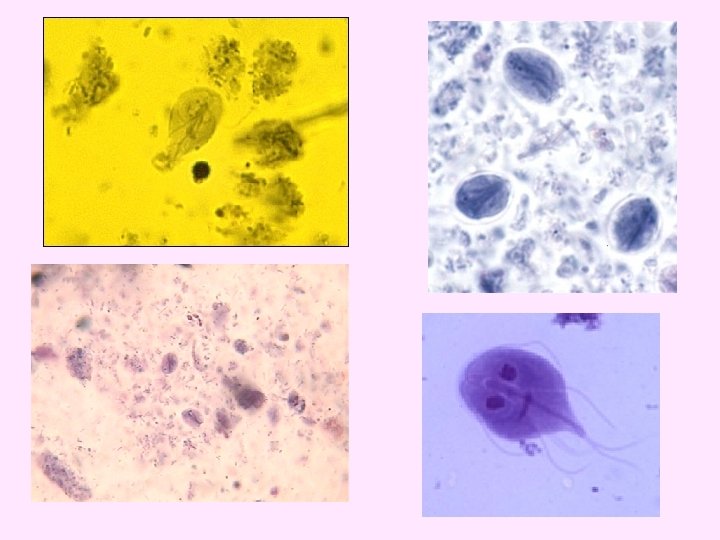 • Diagnosis : identification of parasites by microscopy of discharge. (Examination of vaginal or uretheral discharge for T. vaginalis). • N. B. No cyst stage Imp