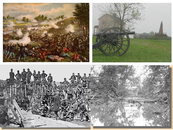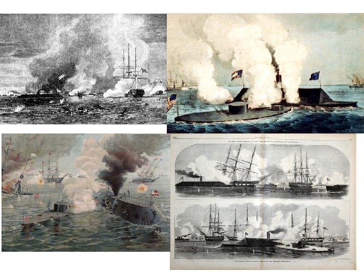 Monitor vs. Merrimac (Spring ‘ 62) • Union tried to keep economic & naval advantages over the South • During the Peninsula Campaign, CSA was able to slip the Merrimac into the river and attack the Union wooden ships • Union countered with its own ironclad, Monitor • The 2 ships lasted for 5 -hours & ended in a draw. • RESULT: Union was able to stop the South’s new weapon from breaking the blockade. Both ironclads destroyed wooden sailing ships for future of naval warfare.