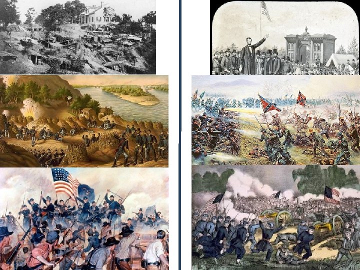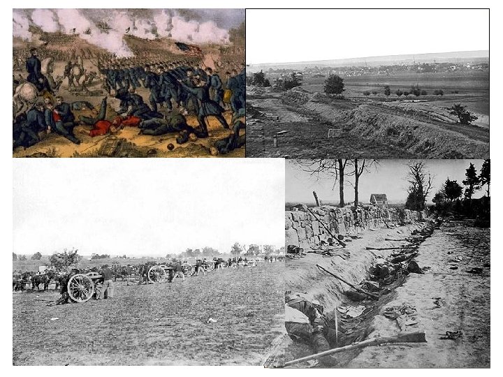 The Union Triumphs (1863 -1865) • Turning Points 1. Vicksburg (Spring 1863): Union controlled most of Mississippi River & New Orleans. Grant began siege against city of Vicksburg. After 7 weeks, Confederates surrendered the city. Union now controlled Mississippi & cut TX, LA, & Ark. from rest of Confederacy 2. Gettysburg (July 1863): Lee took offensive leading an army into Maryland; 3 day decisive battle of the war; went back and forth b/t USA & CSA; Lee retreated & never regained the offensive