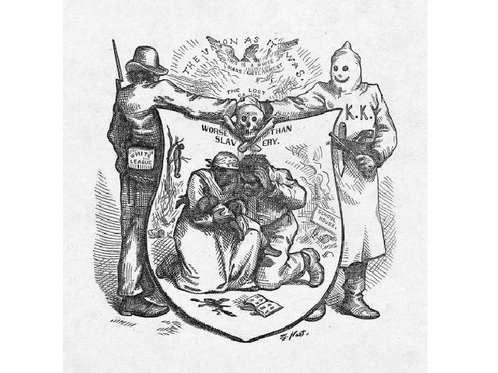 Collapse of Reconstruction • Ku Klux Klan – Ku Klux Klan (KKK)—Confederate veterans group that turns terrorist – Grows rapidly; aims to restore white supremacy • The Panic of 1873 – Business opportunities in South lead investors to excessive debt – Largest government securities dealer bankrupts, starts panic of 1873 – banks, businesses close; stock market collapses – Panic triggers 5 -year economic depression