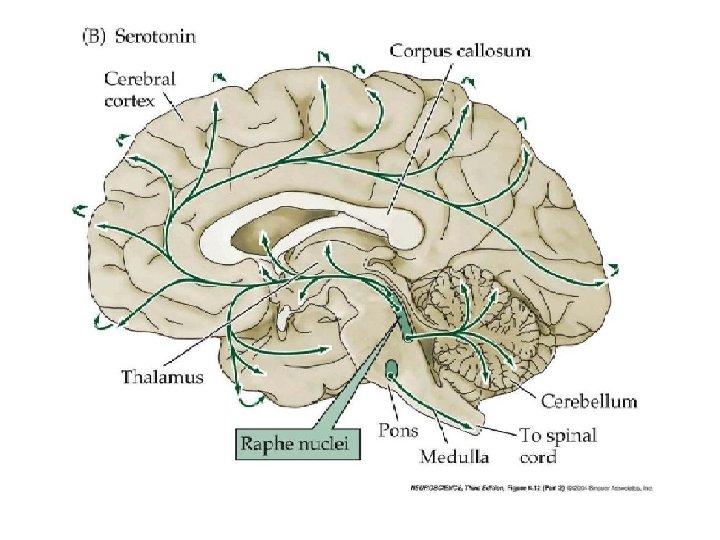 BIOGENIC AMINES • The monoamines that have been implicated in depression are norepinephrine (NE), dopamine (DA), and serotonin (5 -HT). • Disturbances in mood may result when absolute concentrations of NE, 5 -HT, or both are deficient. • Altered numbers, affinities, or both of 5 -HT and NE receptors and uptake sites may affect metabolism.