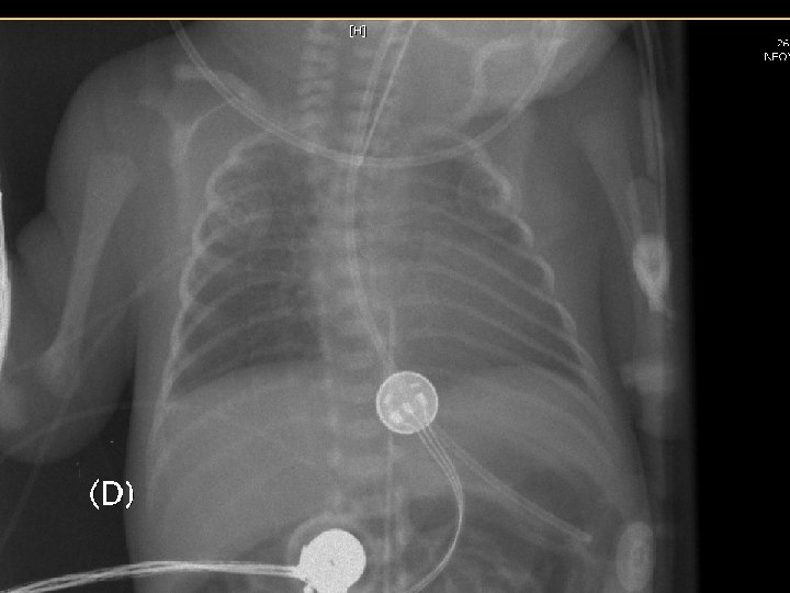 31 6/7 wks GA, 1000 g GA (small for GA) 1 course of prenatal steroids 12 hours before delivery Presents with respiratory distress at birth: RR 64, indrawing, SO 2 84% at RA CPAP trial with fast increasing O 2 requirements (> 60%) Venous and arterial umbilical catheter First art BGA: p. H 7. 09, PCO 2 11 k. Pa (83 mm. Hg), p. O 2 4. 36 Intubation Vent settings: TCPL, RR 60, PEEP 5, PIP 18 Poor sats persists: SO 2 78% under Fi. O 2 80%