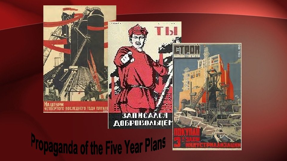We are 50 -100 years behind the advanced countries. We must make up this gap in ten years. Either we do it or they crush us. Stalin 1931 The Five Year Plans Stalin believed that industry could only develop through state control. Under GOSPLAN, three Five Year Plans set targets between 1928 -1941 to increase production. Russian industry changed enormously. New towns such as Magnitogorsk grew up and large projects such as the Dnieper hydroelectric dam were developed. The USSR became a major industrial country. The human cost was high. Forced labour killed millions, working conditions were poor and hours of work were long.