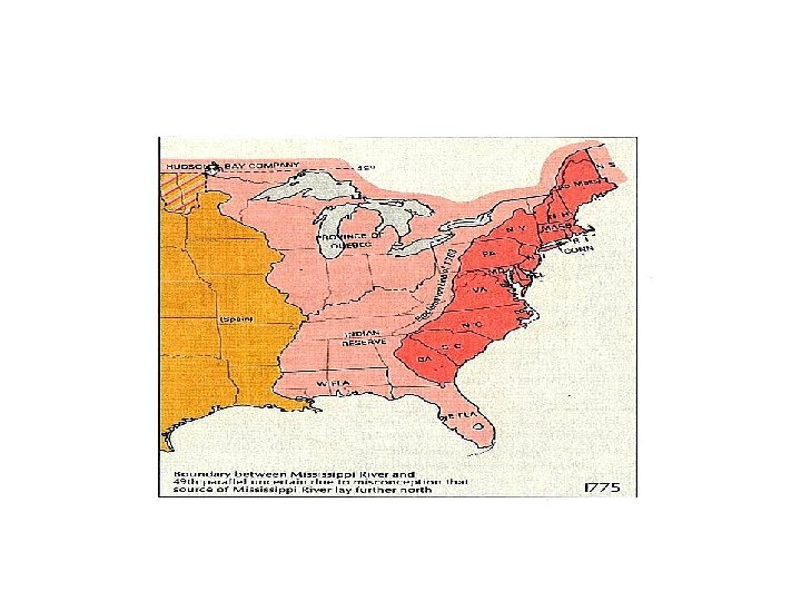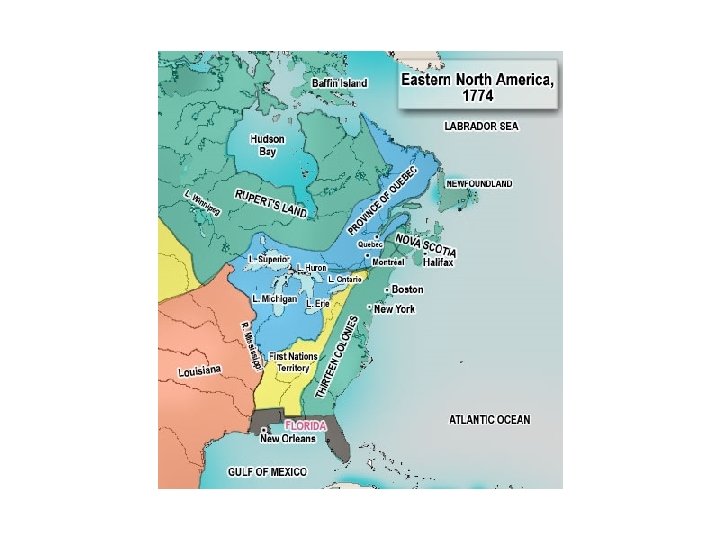 • British defeat French in the French and Indian War • Results of the Peace of Paris – Britain receive all of French Canada and all territory south of Canada and east of the Miss. – France and Spain lose West Indian colonies – Britain received Florida from Spain – Spain receive from France its territory west of the Mississippi, including control of New Orleans.