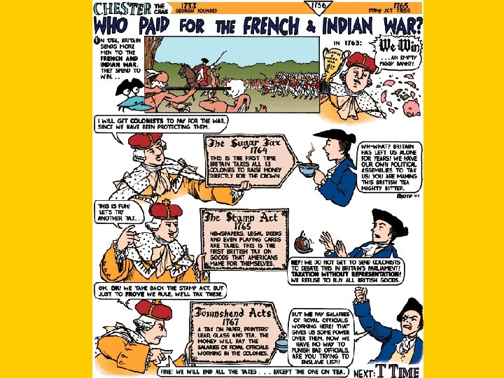 What’s going on!!!! § § § Who has authority to make tax law? Popular sovereignty vs. Royal sovereignty Stamp & Townsend Acts—Colonists not opposed to taxation—just want a say in it § George III repealed both—he did not have to do so, but he did because it was the right thing to do under the English Bill of Rights.