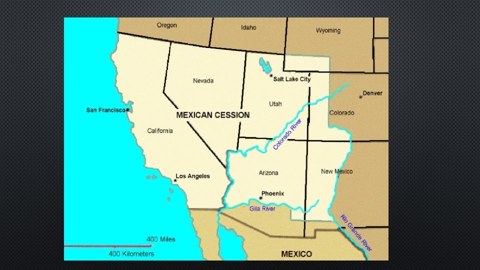• TREATY OF GUADALUPE HIDALGO • TREATY ENDING WAR WITH MEXICO. • USA WON AND GAINED UPPER CALIFORNIA AND NEW MEXICO. RIO GRANDE THE BORDER. CALLED MEXICAN CESSION. • ISSUE AROSE DUE TO SLAVERY. WOULD NEW TERRITORIES BE FREE OR SLAVE? HOW WOULD REPRESENTATION BE DIVIDED?