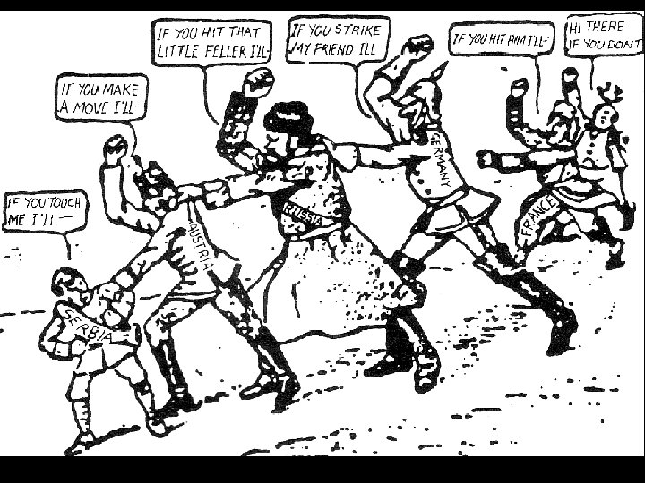 CHAIN OF EVENTS DUE TO ALLIANCES Red=Central Powers, Blue = Allied, Purple= Neutral 1. Assassination 2. Austria-Hungary issues an ultimatum to Serbia, Serbia can’t meet 3. Austria-Hungary declares war on Serbia 4. Russia declares war on Austria-Hungary 5. Germany declares war on Russia 6. France declares war on Germany 7. Germany invades NEUTRAL Belgium 8. Britain declares war on Germany Ultimatum: a set of final conditions that must be accepted to avoid serious consequences