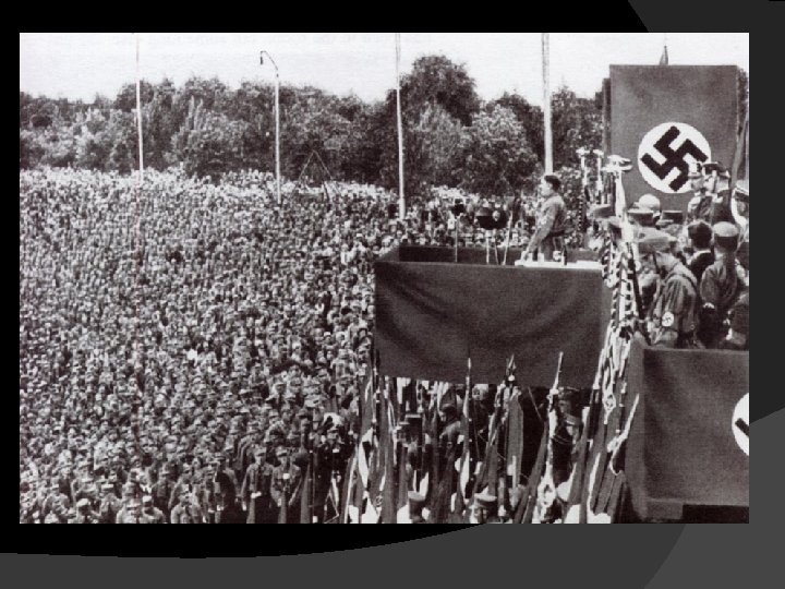 � Worked to Restore German Pride �Military parades �Blamed WWI failures on Jews �Called Germans the “Aryan Master Race” • Hitler had very effective propaganda • Hitler was a good speaker • Attracted people to his Nazi ideas • Cult of Personality – intense devotion to Hitler • Used mass media – used radio, slogans, newspapers and campaigns