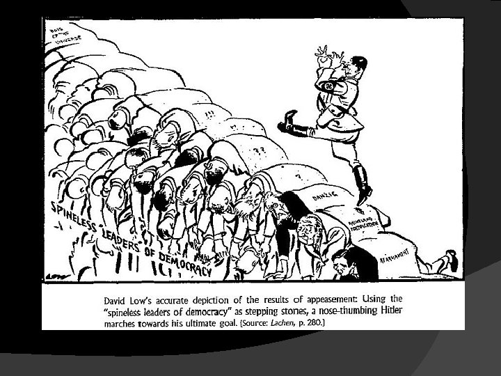 Appeasement • Before WWII, appeasement was routinely used as a foreign policy in order to prevent war • Involves giving in to the “reasonable demands” of a foreign power in order to prevent the outbreak of war.