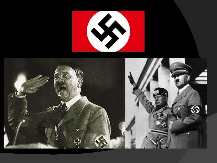 Fascism (Nazism) Originated in Italy (Mussolini) � Adolf Hitler created the most powerful Fascist Party in Europe � Dependent on militarism � Unquestioning acceptance of a dictator � The use of aggression as foreign policy � Ultra Nationalism � �Notion of “Master Race” � Appeals to ideas of glory