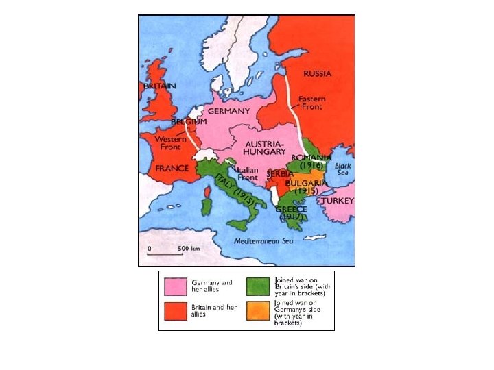 Triple Alliance in 1914 • What about Italy? ? ? When Germany and Austria-Hungary found themselves at war in August 1914 with the rival Triple Entente of Britain, France, and the latter's ally, Russia, Italy pledged its support to the Central Powers, but subsequently entered the conflict on the side of the Entente against Austria-Hungary in May 1915 and Germany in August 1916.