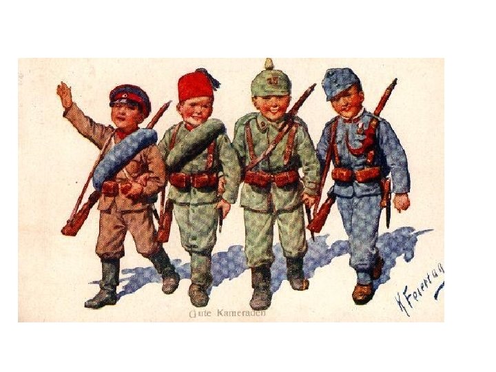 Militarism Song: “Hymn of Hate” or “The Hasslied” • Chanted by the German navy prior to and during World War One: • • • French and Russian, they matter not, A blow for a blow, a shot for a shot, We fight the battle with bronze and steel, And the time that is coming peace will seal. You we will hate with a lasting hate, We will never give up our hate. Hate by water and hate by land Hate of the head and hate of the heart Hate of the hammer and hate of the crown Hate of the 70 millions choking down We love as one, we hate as one. We have one foe and one alone: England.