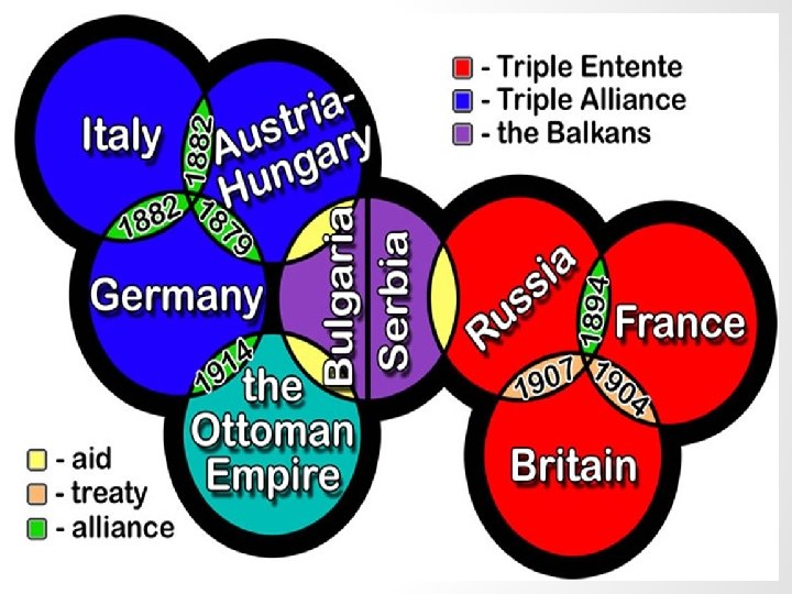 Underlying Causes • What Causes Most Wars… • extreme nationalism (super patriotism or love for one’s country) • imperialism spreading the political or economic control of one country over another • militarism using force or the threat of force against another nation • entangled system of alliances (SECRET) • fanatical leaders