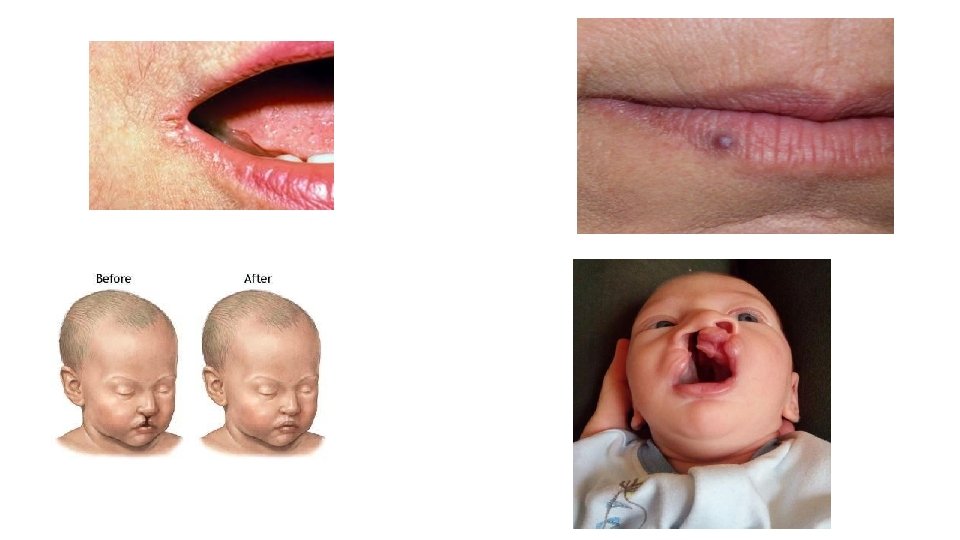 Cheilita angulara (zabaluta)- pustule fisuri dureroase la colturile gurii -ragadele angulare- la colturile gurii, dureroase- in hipovitaminoze (riboflavin-vitamin B 2) -tumori: epiteloame si hemangioame -cheiloschizis (buza de iepure) si cheilopalatoschizis (gura de lup)-lipsa de fuzionare a mugurilor labial si palatine- la buza superioara, corectatecicatrice -cicatrici- traumatisme