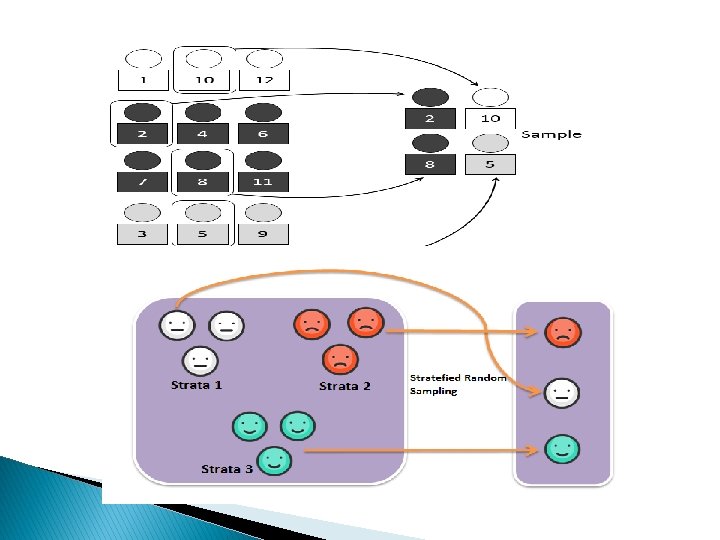 Types of stratified random sampling 1. Proportionate stratified random sampling: - Randomly draws the individuals from each stratum in a similar proportion as they exist in the population. Class-wise distribution of a population of 10, 000 students Class Composition of population Proportion of each class BA 6000 0. 60 MA 3000 0. 30 M Phil 1000 0. 10 Total 10, 000 1. 00 A proportionate breakdown of sample of 1000 students Class Sample composition Class proportion BA 600 (0. 60 X 1000) 0. 60 MA 300(0. 30 X 1000) 0. 30 M Phil 100(0. 10 X 1000) 0. 10 Total 1000 1. 00