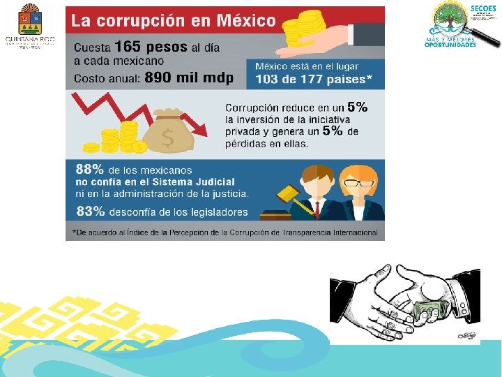 Señales de Alerta “Nadie se va a enterar…” Circulo de la Corrupción “Me lo merezco…” (o “Me lo deben. . . ”) Corrupción “Mantengamos esto en secreto. . . ” “Jamás lo van a extrañar…” “Estoy pagando con la misma moneda. . . ” “Es legal, técnicamente hablando…” Desigualdad Social “Todos lo hacen. . . ¿Esto no afecta en mi trabajo? ” Pobreza