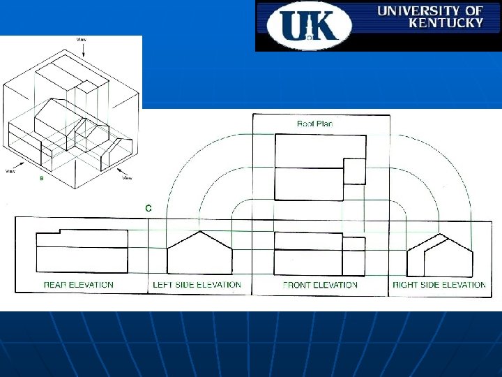 Orthographic Views/Drawings n n n all construction drawings use orthographic drawings projected at right angles more detail can be shown start with the front view drawn to true size or scale