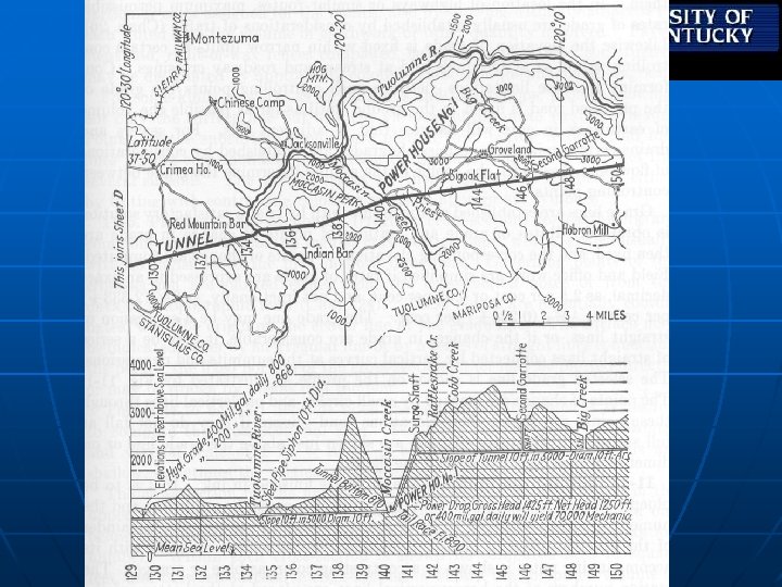 Profiles n n Profiles are vertical sections through a topographic map that shows the earth’s surface at any location along an alignment. Profiles often have a vertical exaggeration in order to show more detail of the surface.