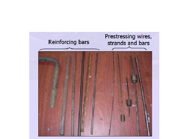 High Tensile Steel: • The tensile strength of prestressing steel is given in terms of the characteristic tensile strength (fpk). • The high-tensile steel used generally consists of wires, bars or strands. • High tensile steel usually contains 0. 6 -0. 85 per cent carbon. • Nominal size of bars used for prestressing are 10, 12, 16, 20, 22, 25, 28 and 32 mm diameter. • The ultimate tensile strength of different sizes of wires, bars and strands are specified in IS codes