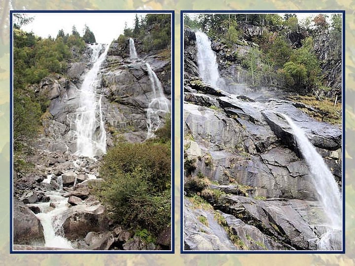 Ce diaporama vous emmènera dans des petits villages de la « Val di Sole » . Cette région a longtemps connu un taux de chômage important car, à part la production des pommes et de quelques cépages, il y avait peu de ressources. En conséquence, au début du XXe siècle, beaucoup de familles et de jeunes émigrèrent à l’étranger, principalement en France. Vers les années 1970, les sports d’hiver devinrent très à la mode et toute la région bénéficia de cette explosion. Non seulement des stations de ski virent le jour mais également de nombreux hôtels, des commerces ce qui donna du travail à tout le monde. Cependant, on peut regretter de ne plus retrouver la même authenticité des paysages. Ensuite, vous verrez le « Val di Genova » . Cette vallée taillée dans les granits de l’Adamello est célèbre pour sa grandeur sauvage. La route, longeant un torrent qui bouillonne parmi les rocs, aboutit à la cascade de Nardis tombant d’une falaise haute de 100 m.