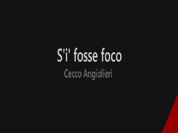 TESTO � S'i' fosse foco, ardere' il mondo; s'i' fosse vento, lo tempestarei; s'i' fosse acqua, i' l'annegherei; s'i' fosse Dio, mandereil'en profondo;