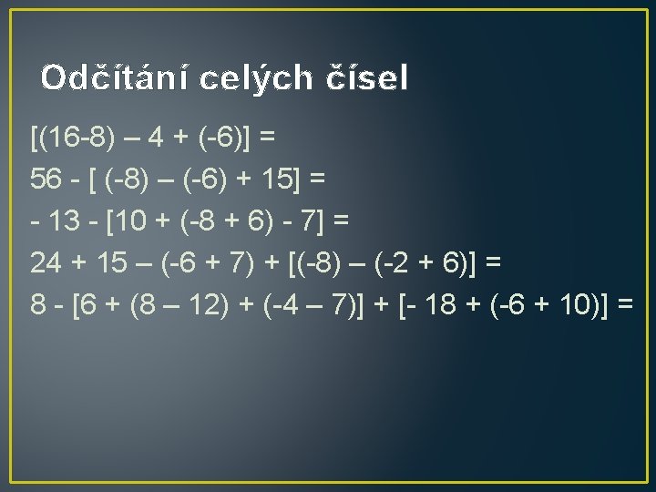 Odčítání celých čísel • U odčítání (i sčítání) používáme pravidlo: + + - a a +=+ - =+=-