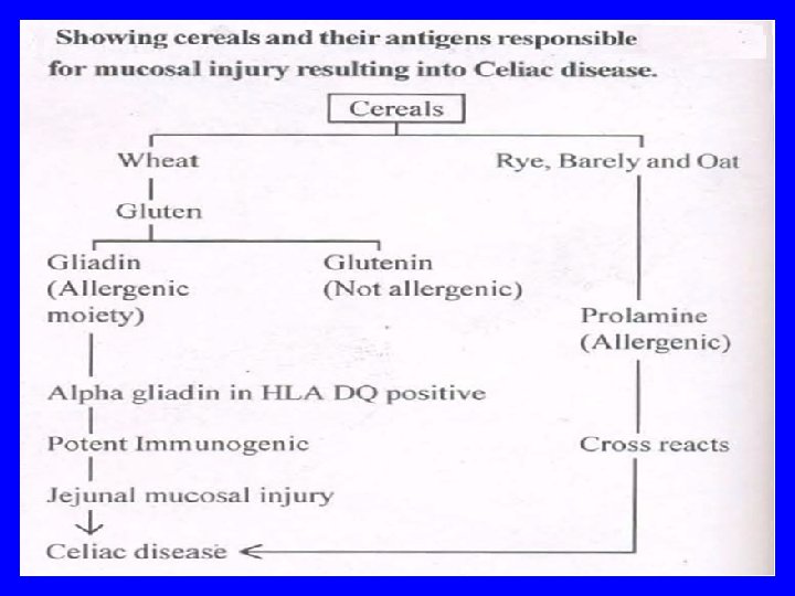 Introduction • Celiac disease is intestinal inflammatory disease that is triggered in genetically susceptible individuals by dietary gluten protein found in wheat, barley & rye • It is believed to be present in up to 1 in 100 of population