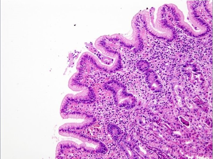 Nálezy v jiných částech zažívacího traktu: Lymfocytární gastritis n n 10 -45% celiakií (4 -10% u Hp) častěji u refrakterní Lymfocytární colitis n n u 19% neléčených (často jen IEL) U 67% refrakterní celiakie (lymfocytární colitis) Kolagenní colitis v malém počtu případů