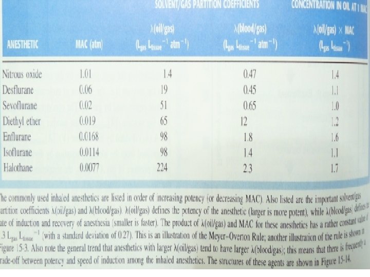 Inhalační celková anestetika – fyz-chem vlastnosti • Plyn (rajský N 2 O, xenon) vs. Páry kapalin (éther, halotan, izofluran, halotan, sevofluran, desfluran) • Nasycovací koncentrace – v rovnovážném stavu je nad kapalinou prostor nasycen párou, která vykonává tlak = tlak par