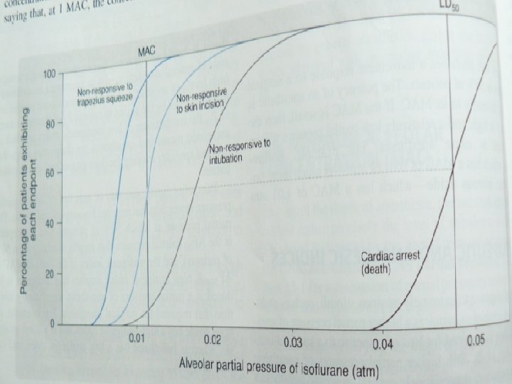 Inhalační celková anestetika – fyz-chem vlastnosti • MAC – minimální alveolární koncentrace – je alveolární koncentrace, při níž 50 % všech pacientů nereaguje obrannými pohyby na incizi kůže – Ovlivněna věkem, dalšími anestetiky, opioidy, těhotenstvím, teplotou těla • MAC EI 50 - … u 50 % pacientů umožňuje laryngoskopii (halotan MAC EI 50 = 1, 3 MAC) • MAC BAR 50 … u 50 % pacientů potlačí adrenergní reakce na incizi kůže – kardiaci (halotan MAC BAR 50 = 1, 5 MAC) – ale vysoké koncentrace mají kardiovaskulární NÚ – řešeno kombinací s nitrožilními anestetiky…
