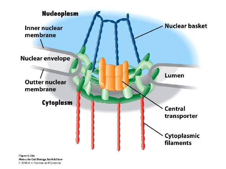 Nucleus • Inner membrane and outer membrane • Outer membrane is continuous with rough ER • The intermembrane space is continuous with the lumen of the ER • Nuclear pores and nucleoporins • Heterochromatin • Ribosomal RNA assembly