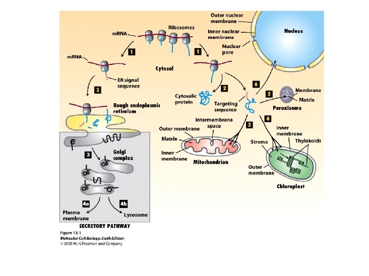 RIBOSOMES • Composed of r. RNA and protein • Site of protein synthesis • Proteins are marked for different organelles or for secretion • Ribosomes are assembled in the nucleolus • Free Ribosomes