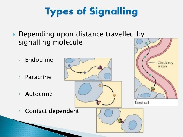 Endocrine signaling • When cells need to transmit signals over long distances, they often use the circulatory system as a distribution network for the messages they send. • In long-distance endocrine signaling, signals are produced by specialized cells and released into the bloodstream, which carries them to target cells in distant parts of the body. • Signals that are produced in one part of the body and travel through the circulation to reach faraway targets are known as hormones.